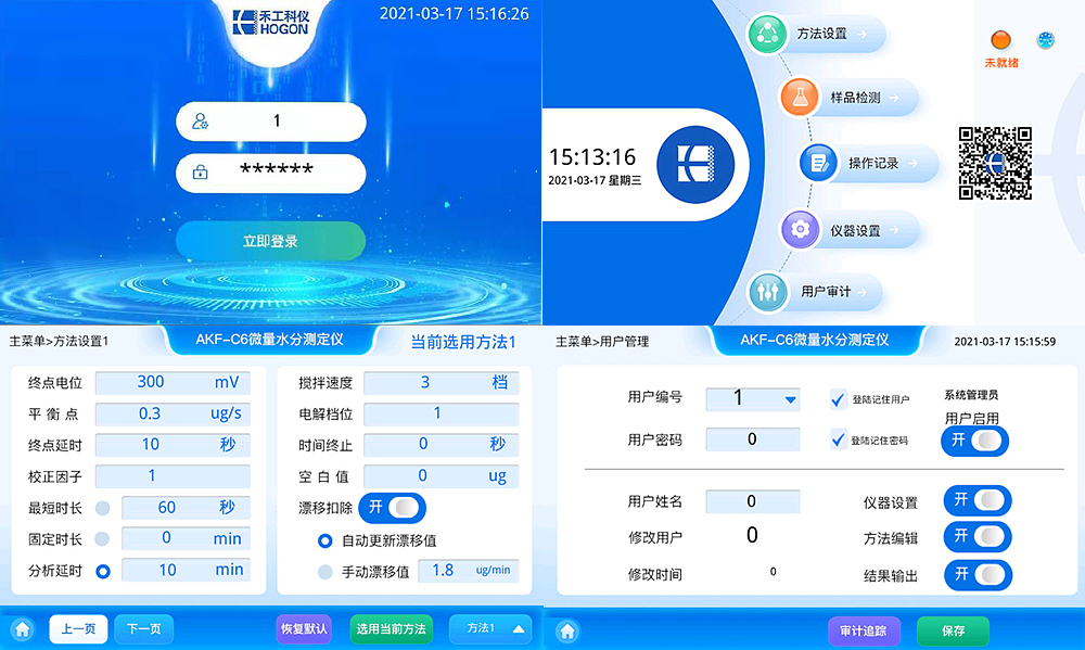 AKF-C6是上海禾工科學儀器公司在保持原有AKF-C6全自動微量水分測定儀優越的性能上面,應對2020新版《中國藥典》對于卡爾費休水分測定儀的要求,在儀器軟件上新開發了符合GMP認證需要的軟件功能,適合制藥、第三方檢測、質量技術監督部門對高端庫倫法卡爾費休水分測定儀的使用需求。